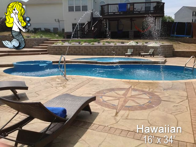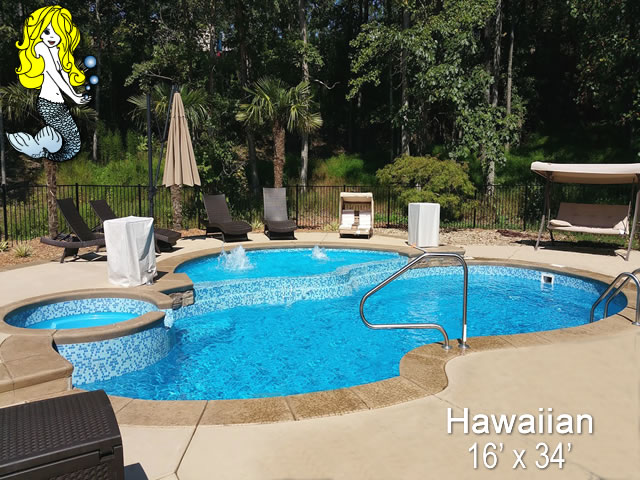 This 16' x 34' paradise offers a shallow end of 3' 4" and a deep end that plunges to nearly 6', catering to swimmers of all preferences. With a generous 510 square feet of space and a water capacity of 12,000 gallons, the Hawaiian Fiberglass Pool is designed for both leisurely dips and energetic swims. Plus, it comes with the peace of mind of a 50-year warranty.Transform your backyard into a tranquil haven with the Hawaiian Fiberglass Pool. It's more than a pool; it's your private tropical getaway, backed by the quality and craftsmanship of Tallman Pools. Dive in and let the Hawaiian take you on a journey to relaxation and luxury, all within the comfort of your own home.