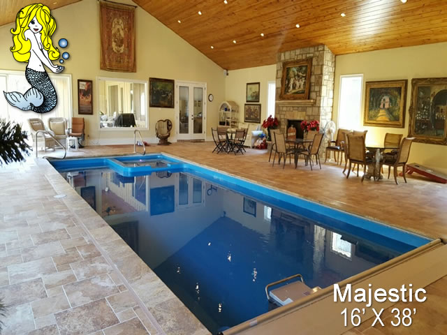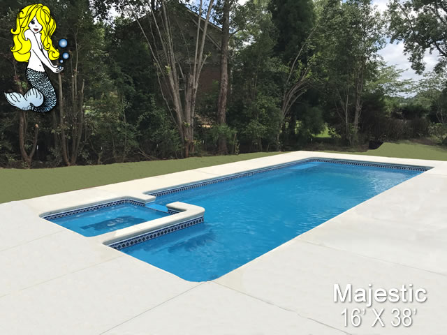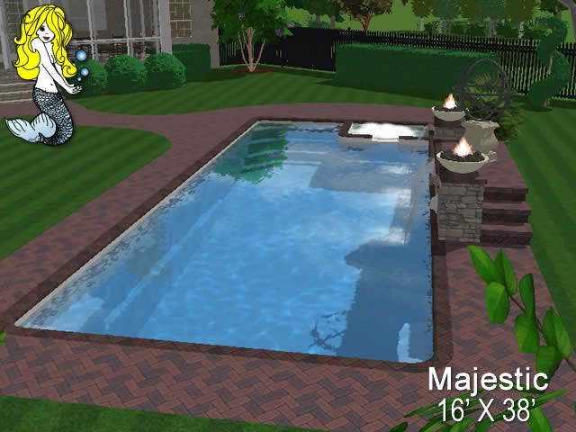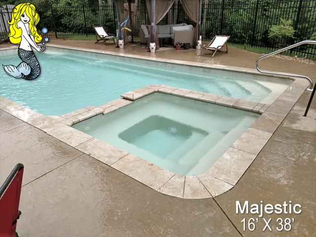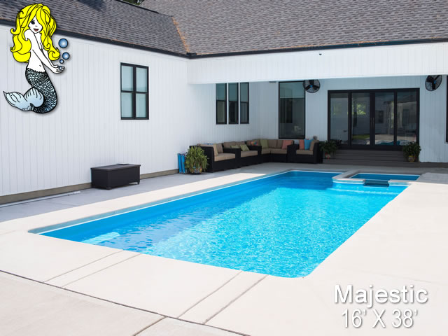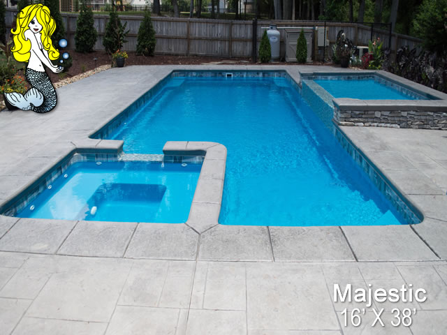 Transform your outdoor space into a magical paradise with the Majestic Fiberglass Pool, a true masterpiece of luxury and relaxation. This 16' x 38' pool, complete with a built-in spill over spa, is designed to bring a touch of elegance and serenity to your backyard oasis.