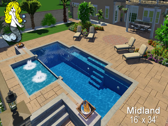 Imagine escaping the worries of everyday life and stepping into your very own tropical paradise. The Midland Fiberglass Pool by Tallman Pools is here to turn that dream into reality. With its spacious design and luxurious features, the Midland is your oasis of relaxation and fun.
